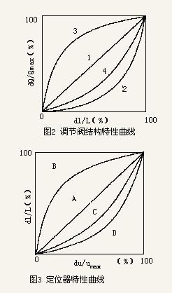 在沒安裝定位器的情況下,K1為一常數即閥行程與到閥控制信號成線性關系,此時調節閥的靜態特性即為其結構特性,無法改變;如果安裝了定位器,則K1即為定位器的性能特性。對于機械力平衡式定位器來說可以通過更換反饋凸輪來加以改變,而對于智能型定位器由于預先進行了程序設置,因此只需要通過功能鍵進行選擇就可以任意改變K1,從而改變調節閥的靜態特性。當現有調節閥的流量特性符合需要時,只需將定位器特性設置為線性。